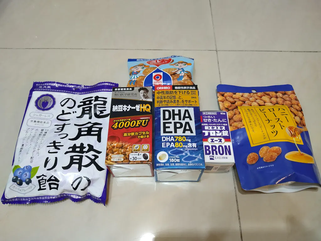 含有DHA/EPA的精製油(日本製造)、銀杏葉提取物粉末(銀杏葉提取物、葡萄糖)、亞麻籽油、含有磷脂酰絲氨酸/明膠、甘油、乳化劑、可可色素、維生素B12的加工食品